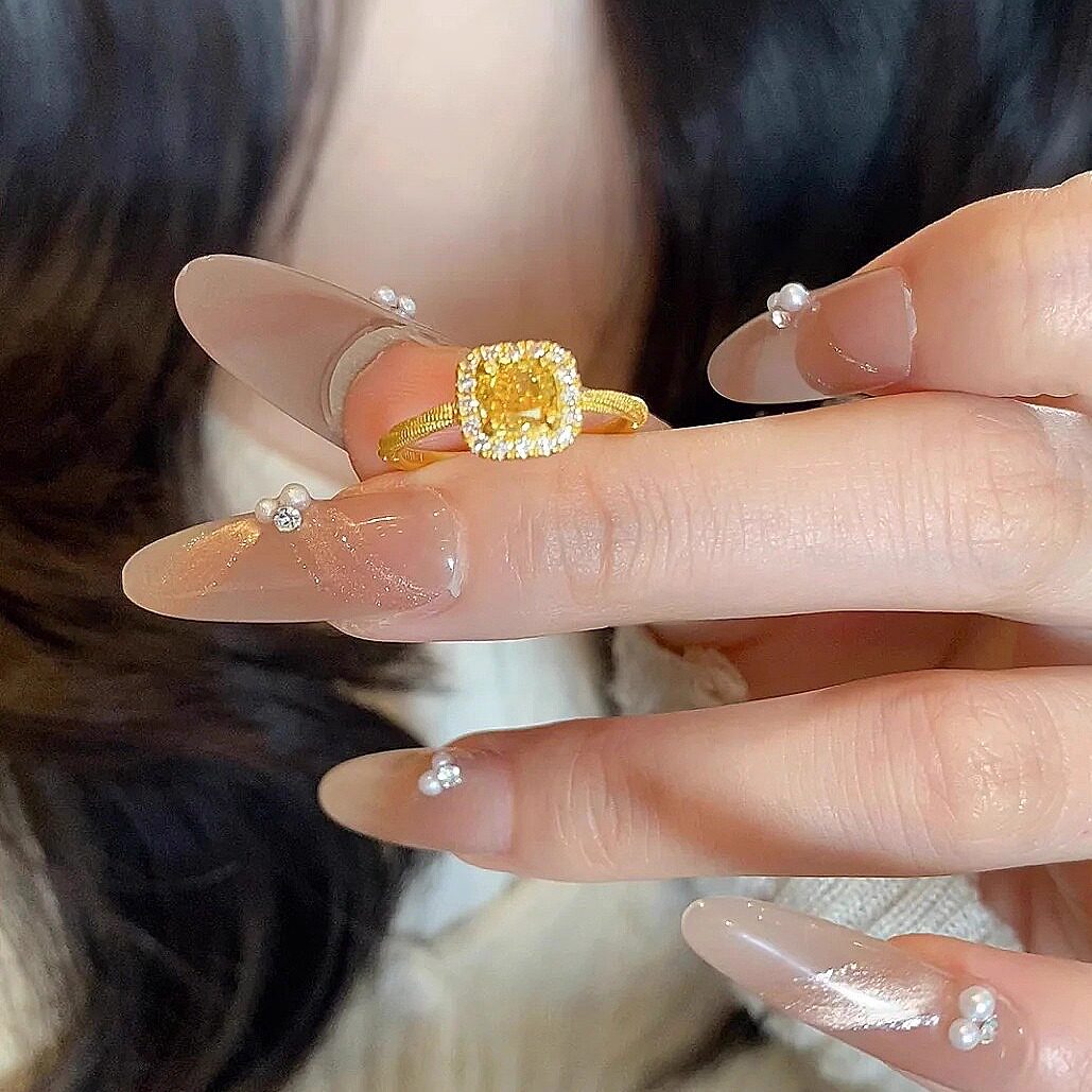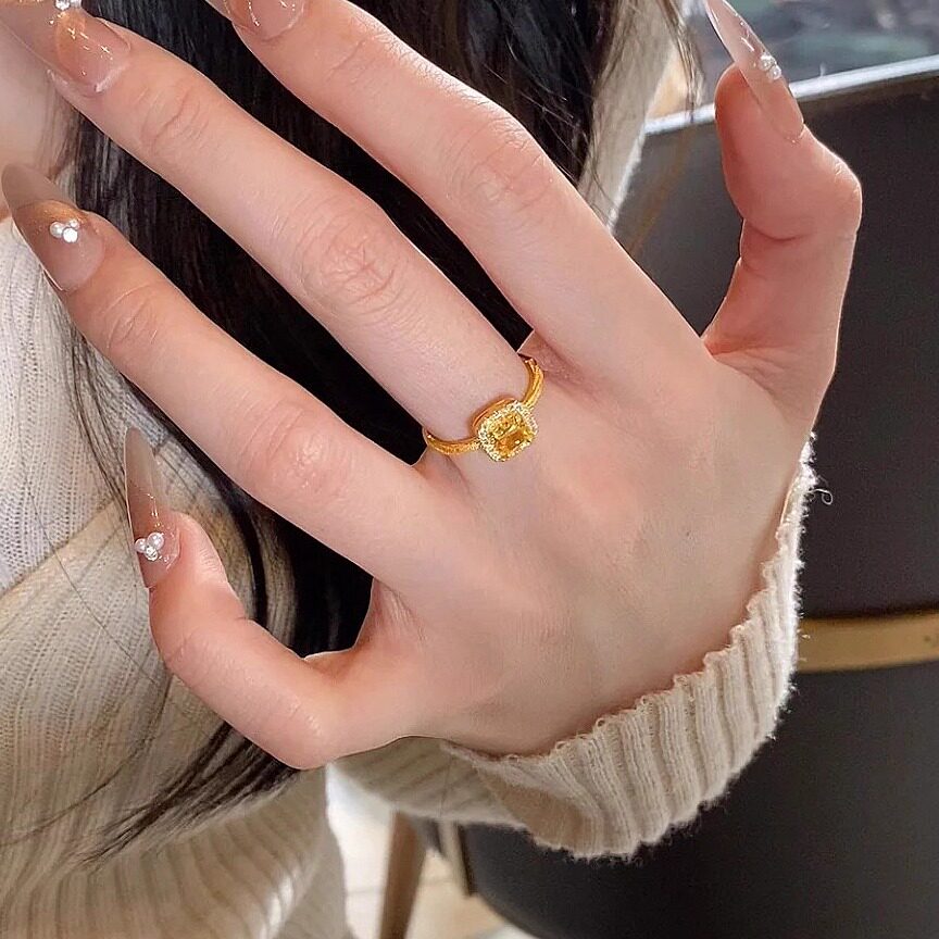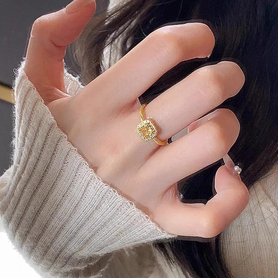 18K镀金小方糖钻石戒指女轻奢时尚活口小众指环高级可水洗不掉色