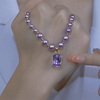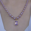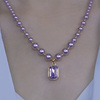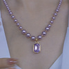 网红爆款紫气东来珠珠方形水晶项链日韩复古锁骨链气质优雅毛衣链