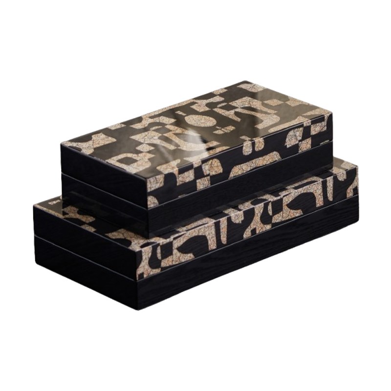 中古风客厅茶几桌面暗夜系列创意罗马文拼图圆形托盘抽纸盒装饰品