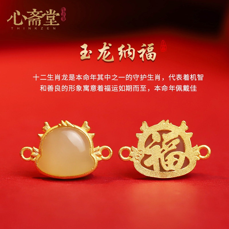 心斋堂【玉龙纳福】2024龙年朱砂手串女本命年护身和田玉手链礼物
