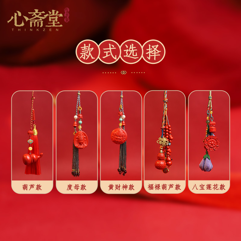 心斋堂【百福】天然朱砂葫芦挂件吊坠包包挂链汽车挂饰品创意礼物