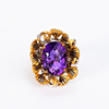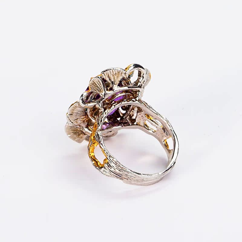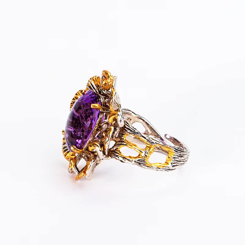 天然复古紫水晶开口戒指女银饰S925银意大利工艺紫色宝石原创设计