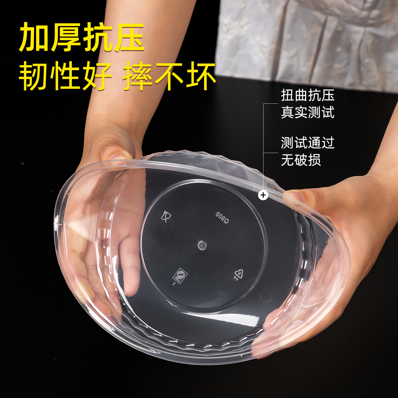 880/1080/1250ml扁圆形盆打包盒香锅冒菜黄焖鸡一次性外卖快餐盒