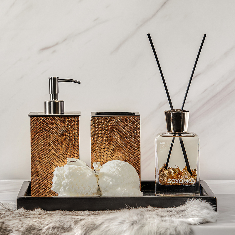 现代轻奢直播间售楼处卫生间高档乳液瓶套装马毛纸巾盒托盘摆件