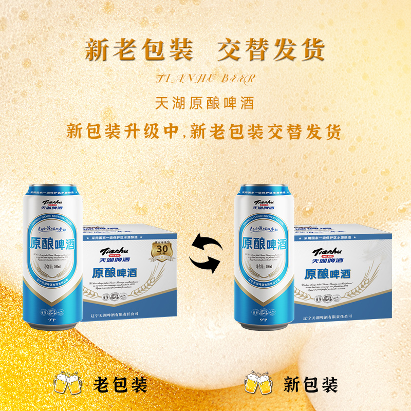 天湖啤酒9度原酿500ml*12听整箱新鲜拉格经典纯正