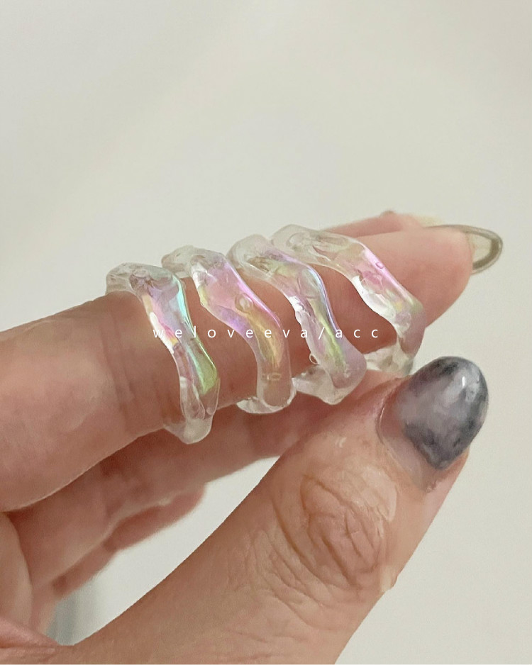 现weloveeva/acc韩国饰品小众夏日水波纹亚克力不规则戒指