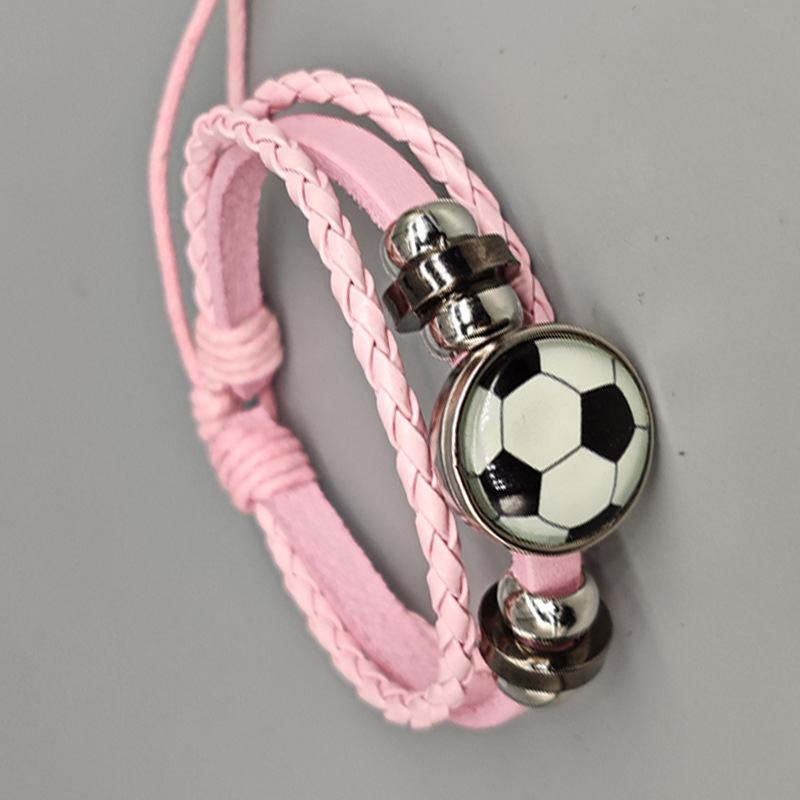欧美时尚流行可调个性串珠足球球迷周边皮革手链纪念运动球类