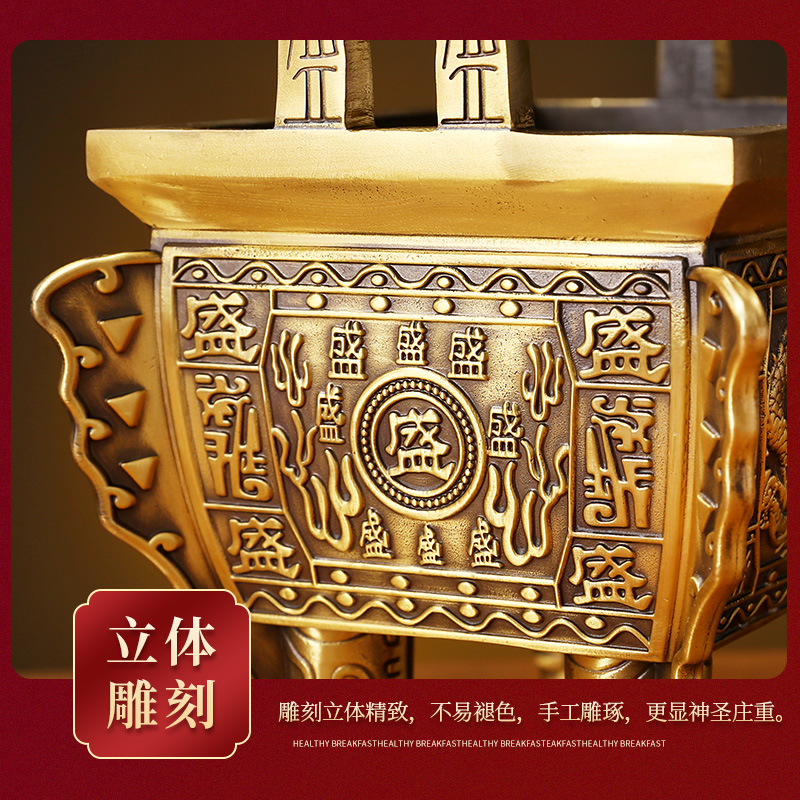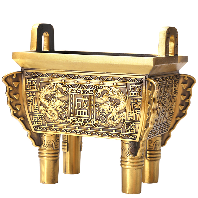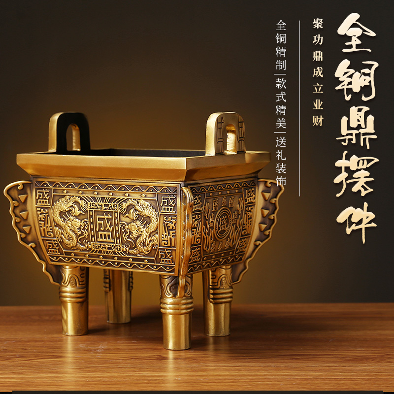 纯铜鼎摆件四方鼎双龙鼎诚信鼎盛千秋家居办公室桌面摆设商务礼品