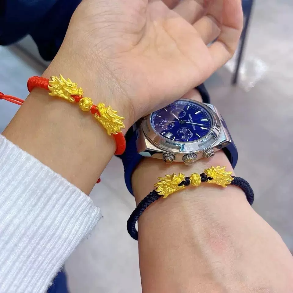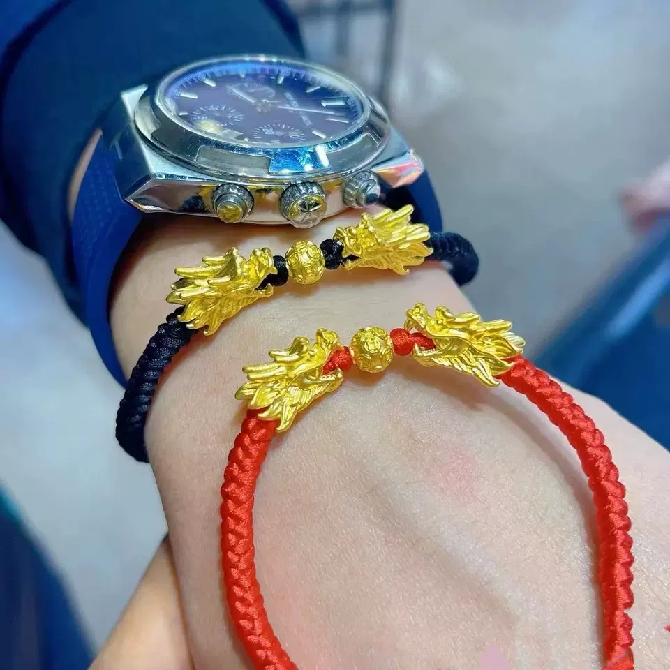 黄金包银手链女黄金色龙头转运珠本命年双龙戏珠红绳编织情侣手绳