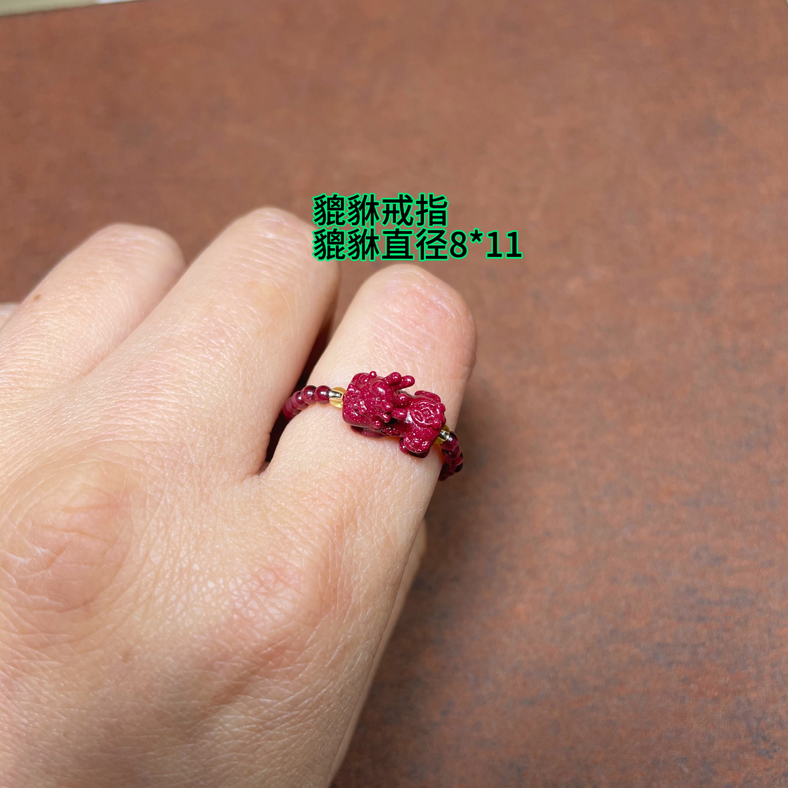 纯手工穿珠天然石榴石玫瑰花貔貅戒指女生指环饰品礼物