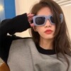 复古蓝色大框方形墨镜女款2024新款多巴胺大脸彩色太阳眼镜高级感