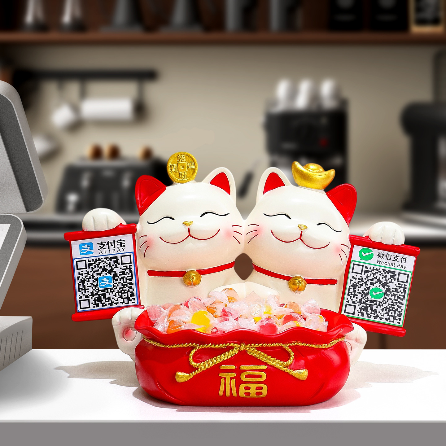 招财猫摆件二维码收付款收钱展示牌收款码定制支付宝微信收钱二维