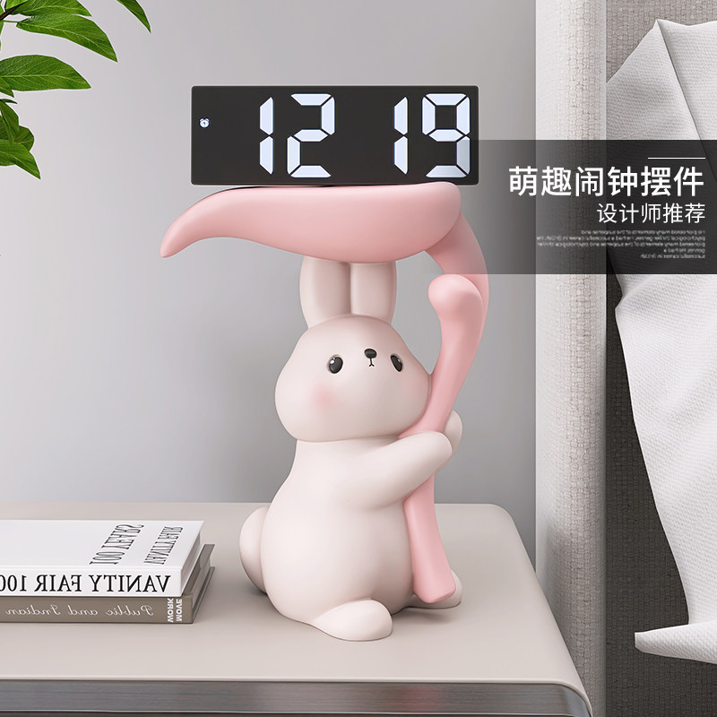 奶油风熊智能电子时钟客厅玄关卧室床头钟表摆件摆放X式电子钟闹