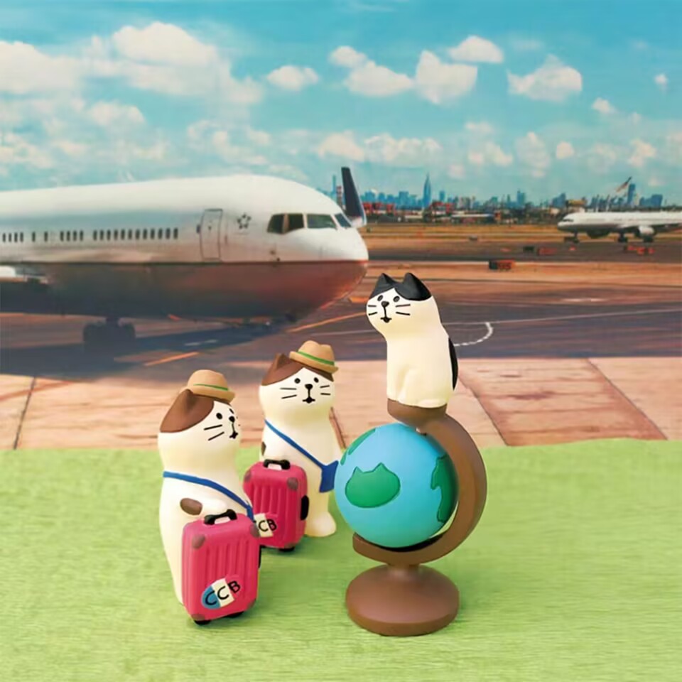 可爱地球仪猫咪树脂摆件日式旅行拉箱猫工艺品装饰创意小生日礼物