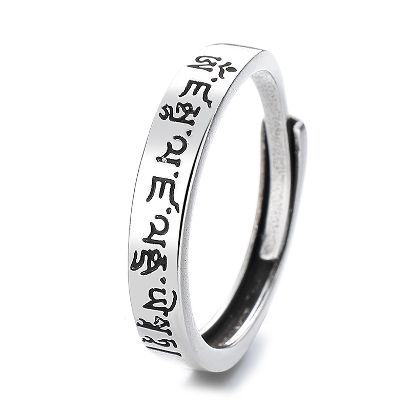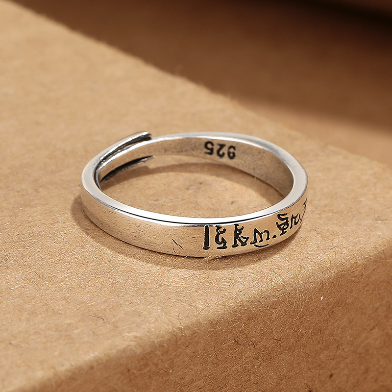 复古藏文黄财神戒指情侣男女做旧工艺泰银色开口可调节简约百搭环