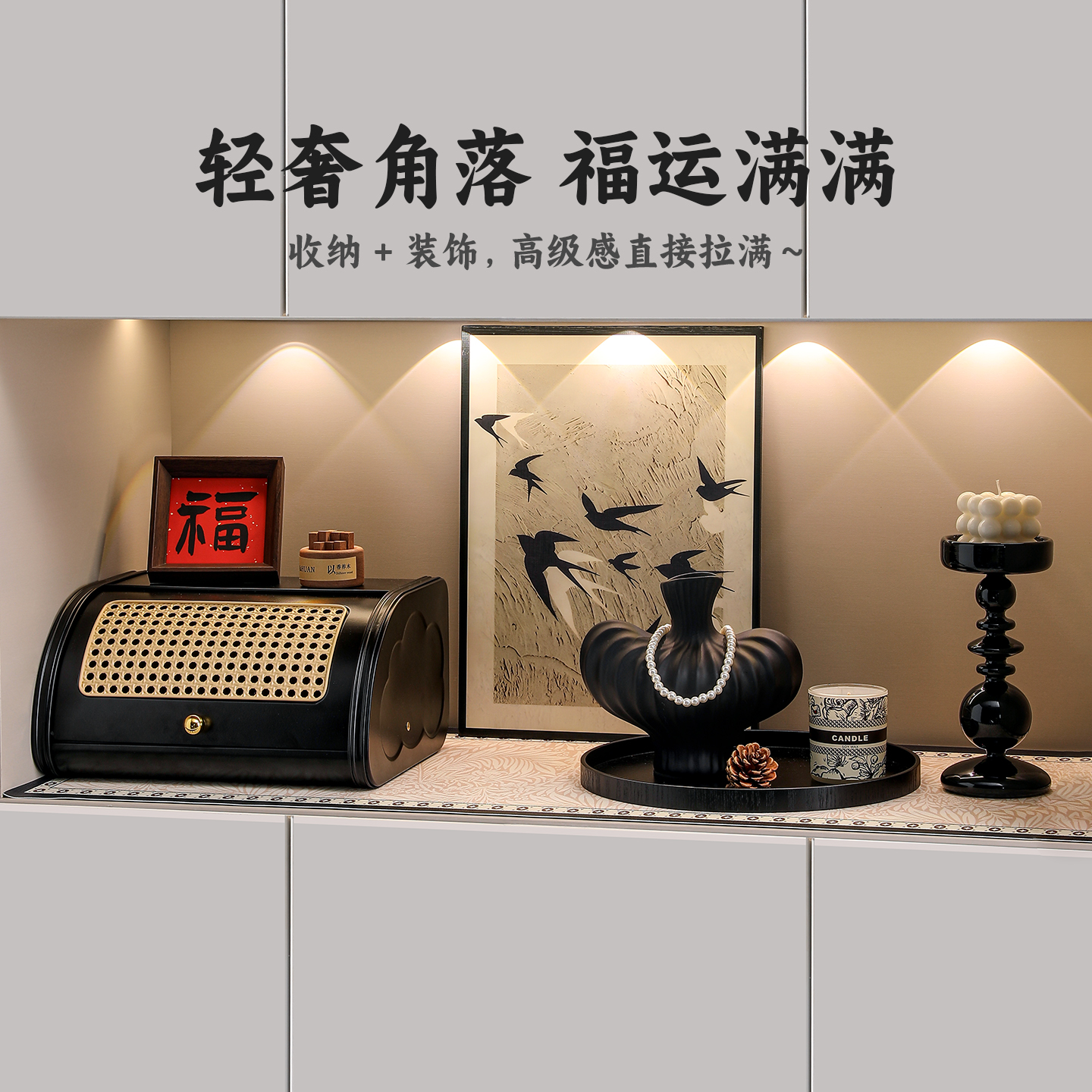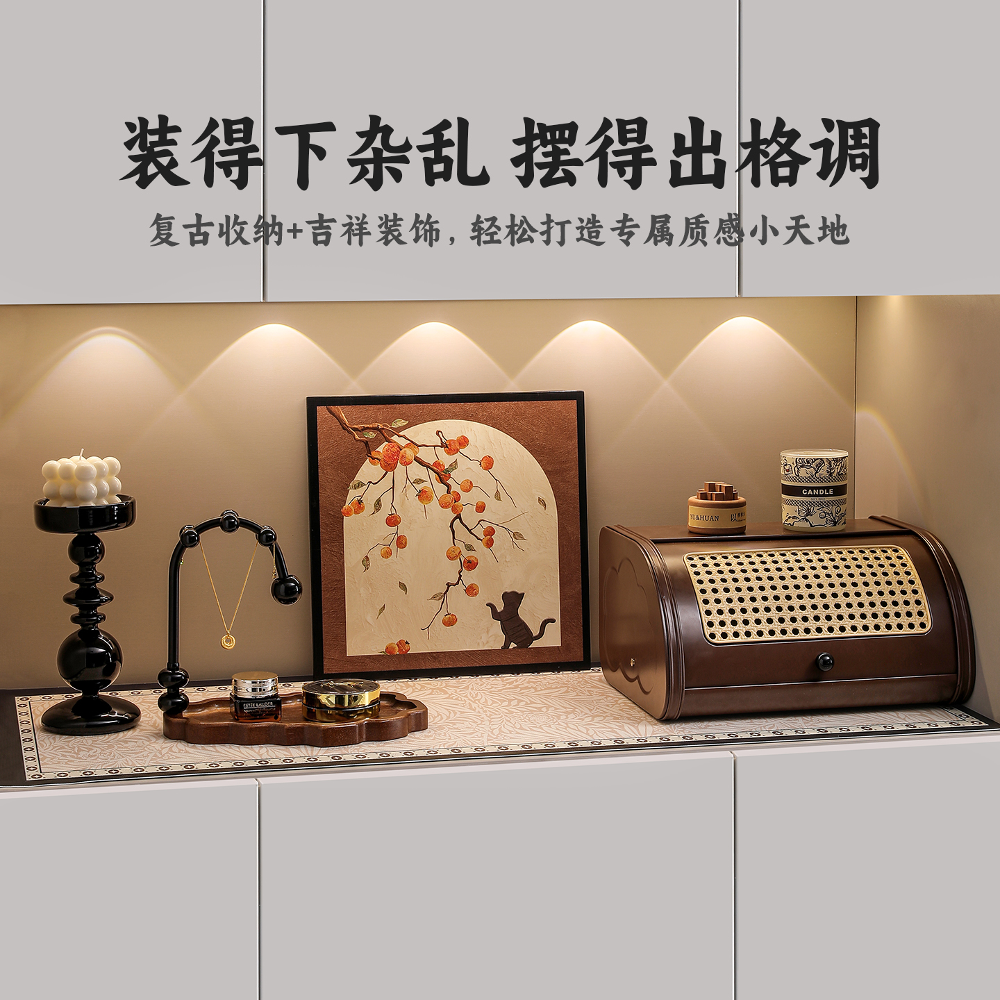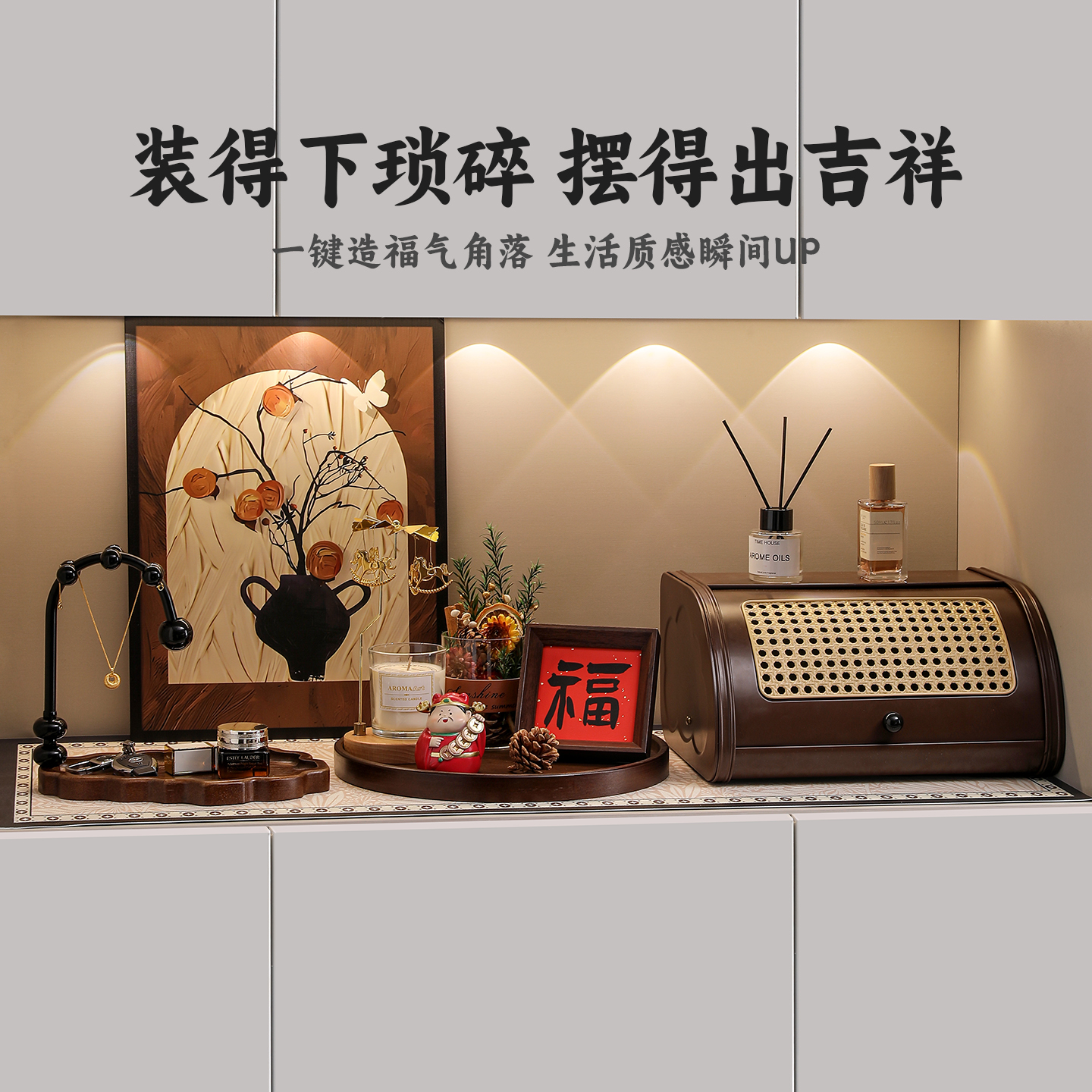中古风玄关装饰摆件放钥匙收纳进门口鞋柜软装法式复古新中式摆画