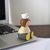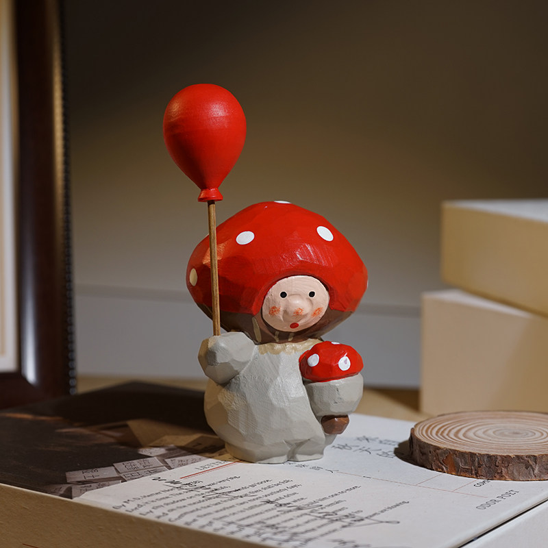 手工木雕可爱蘑菇公仔举气球卡通治愈系办公室桌面装饰品小摆件女