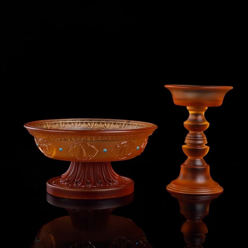 王师兄藏式古法琉璃供护法杯密宗法器修行供水杯琉璃八吉祥酒杯家