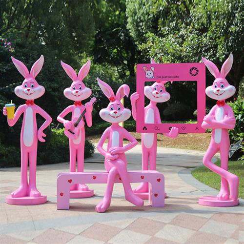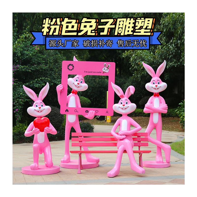 户外卡通粉红兔子玻璃钢雕塑商场新年春节网红打卡拍照装饰大摆件