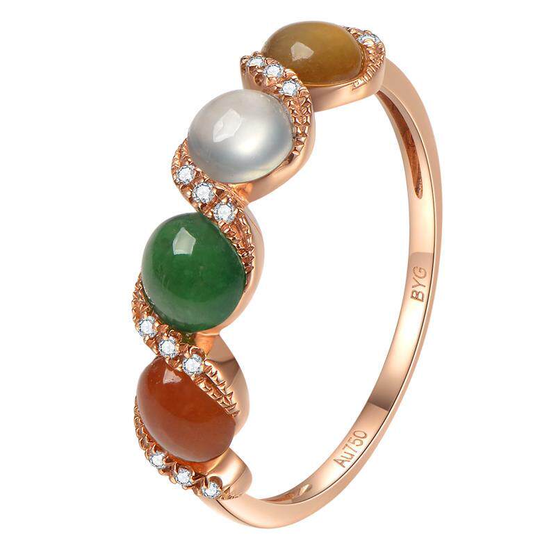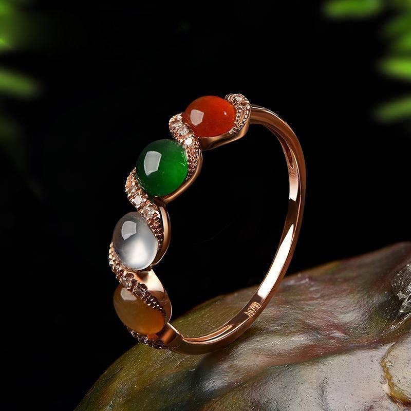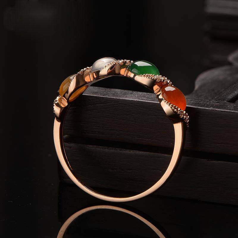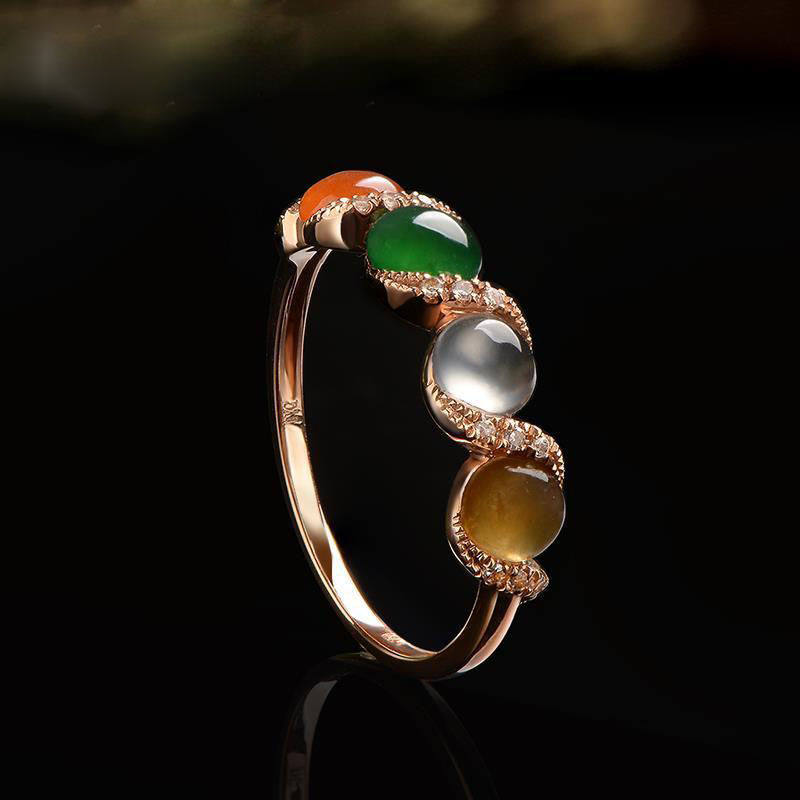 【彩豆】缅甸冰种玉髓戒指镀18K嵌彩玉宝石开口指环百搭玫瑰金色