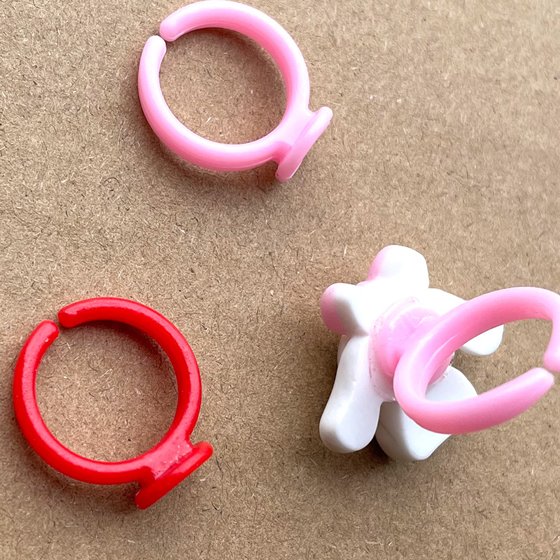 50个 手工DIY发饰材料树脂配件儿童粉色戒指圈塑料戒指托饰品配件