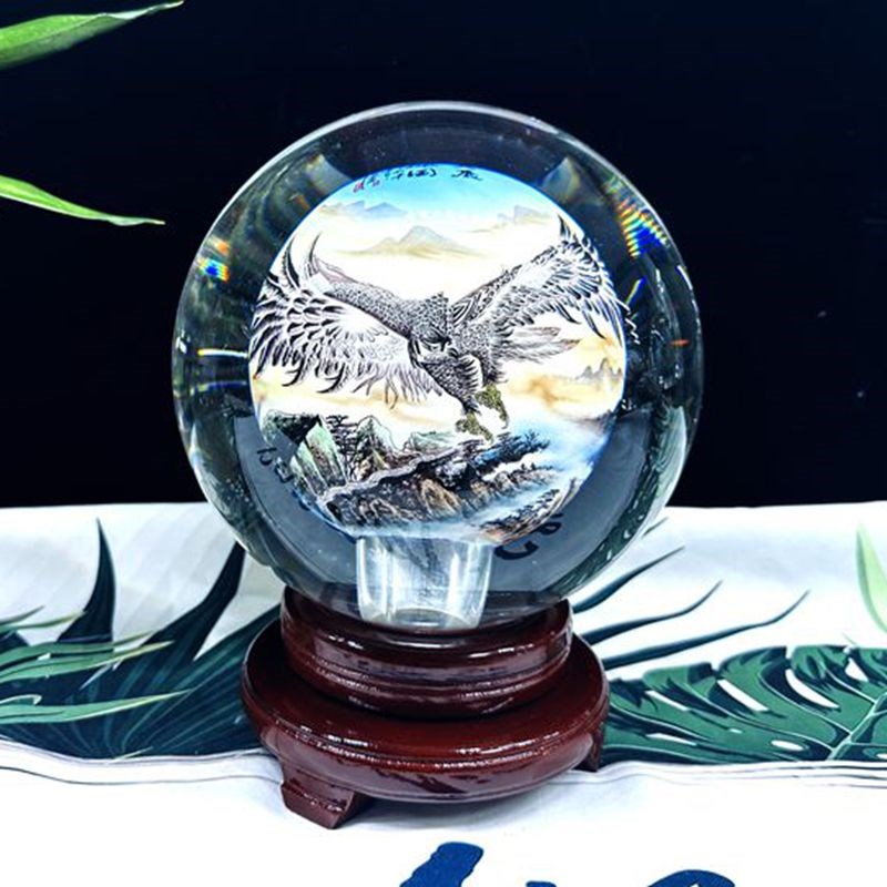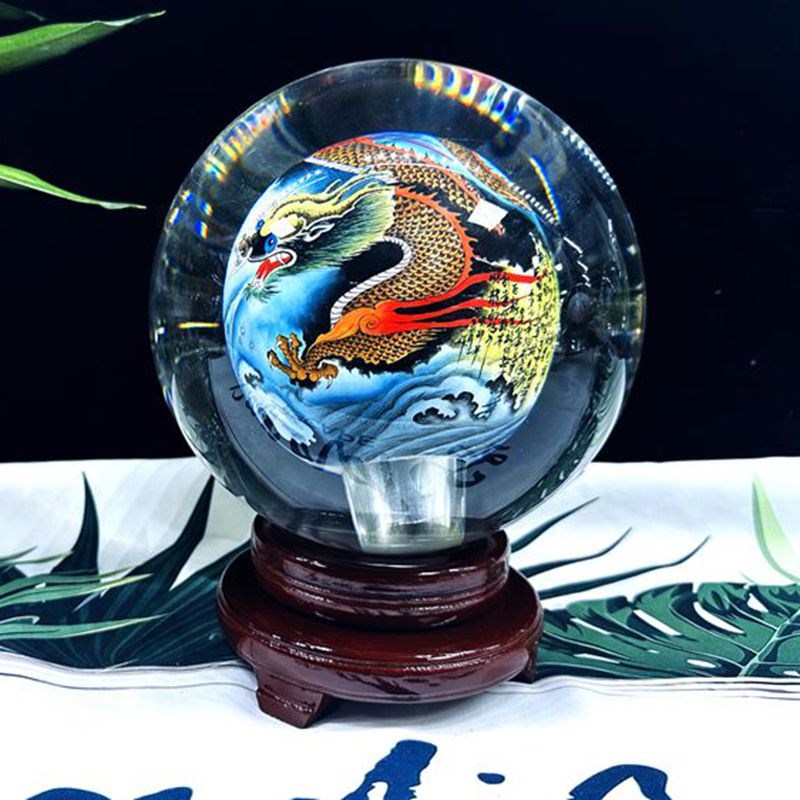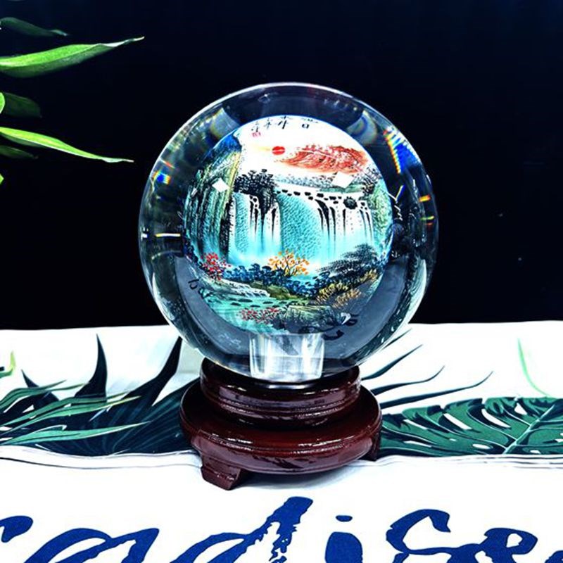 高档手工内画水晶球摆件万里长城牡丹山水大展宏图龙办公装饰中式