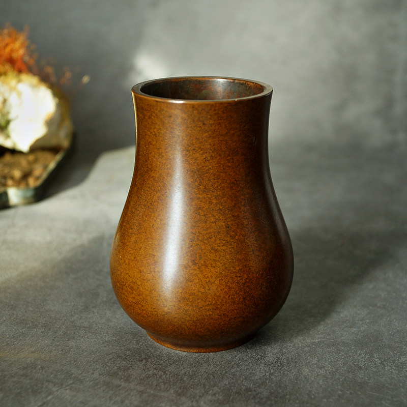 苏工手工铜创意花瓶梅瓶打篆工具盛器茶道香道博古架书房礼佛摆件