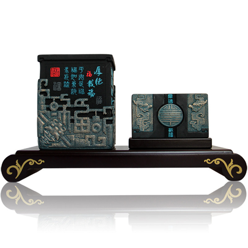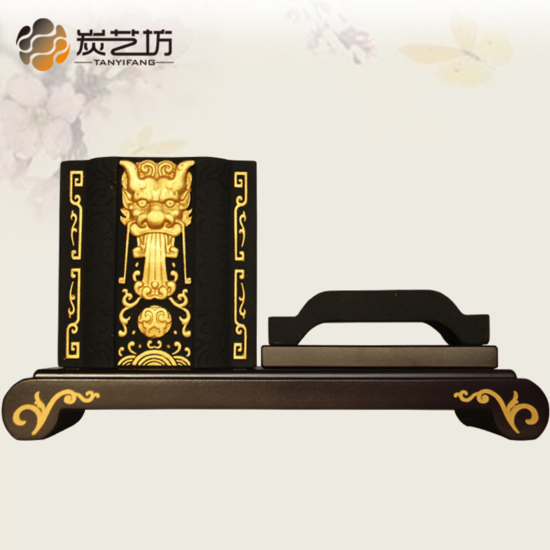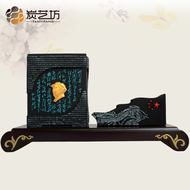 创意炭雕笔筒中式办公室书房桌面摆件送老师朋友领导客户商务礼品