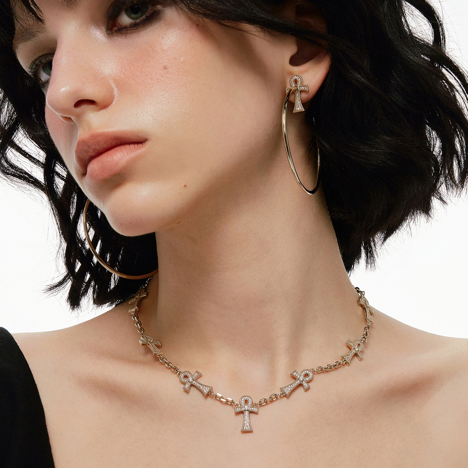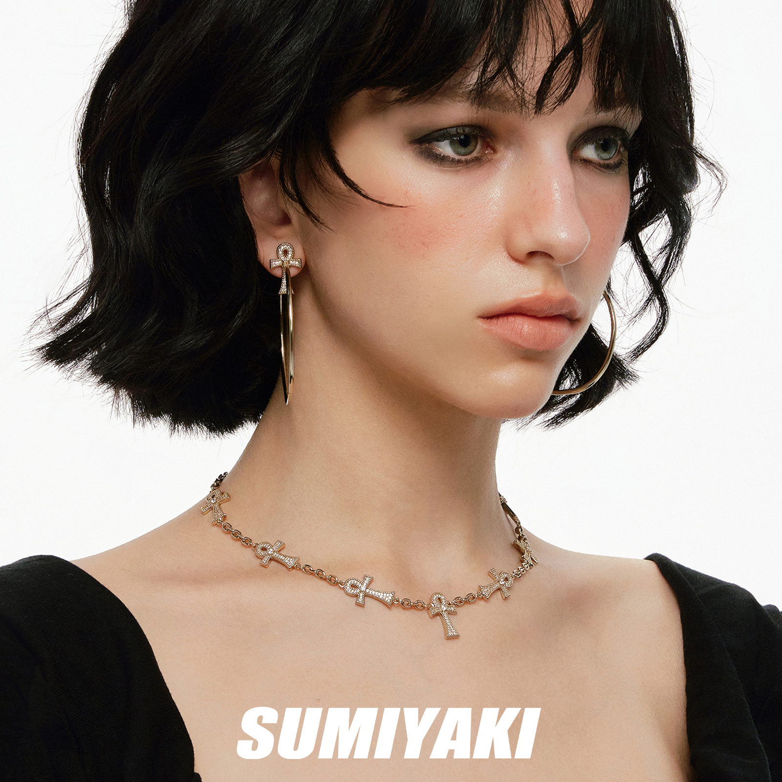 SUMIYAKI 安卡系列满钻十字架项链轻奢锁骨链