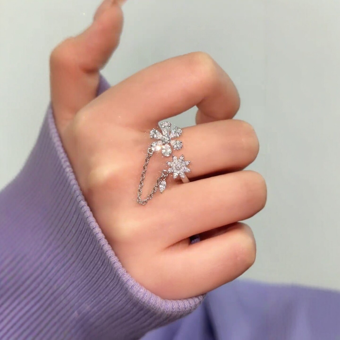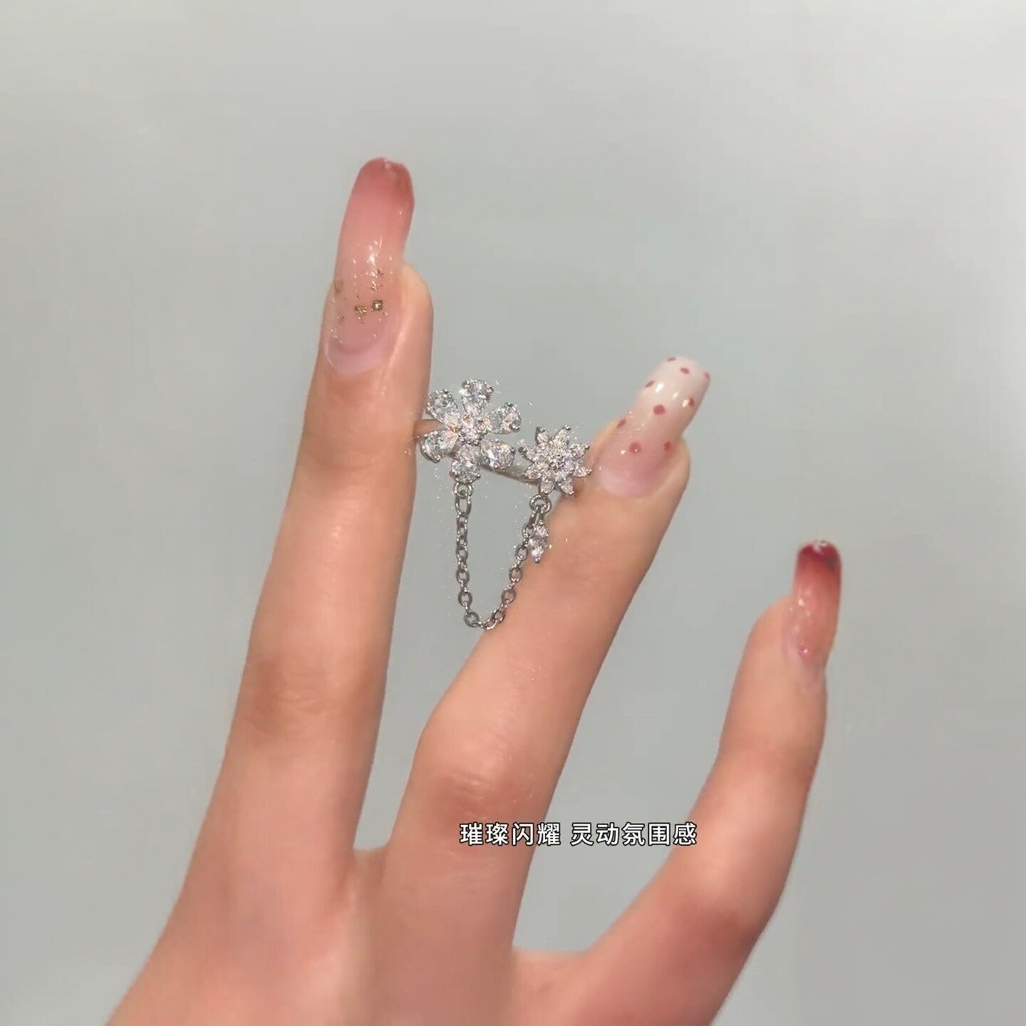 旭平甜美精致白色花朵戒指女轻奢小众高级设计感时尚流苏闪烁指环