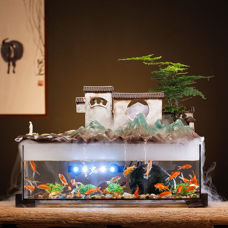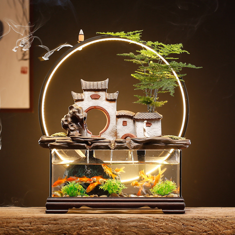 极速新中式鱼缸喷泉流水生财创z意乔迁开业礼品办公室客厅桌面装