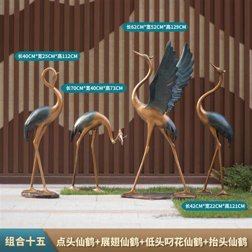 新中式仿铜仙鹤雕塑水池造景玻璃钢园林景观装饰户外丹顶鹤大摆件