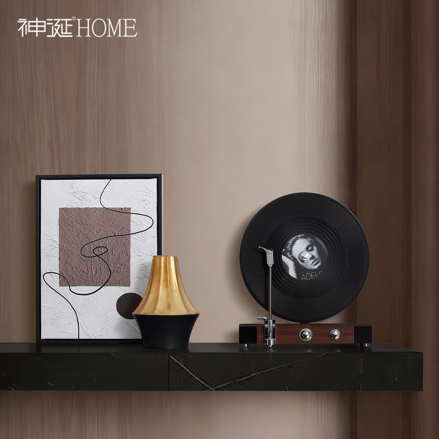 现代轻奢高级感留声机模型摆件复古立式唱片机别墅样板间软装饰品