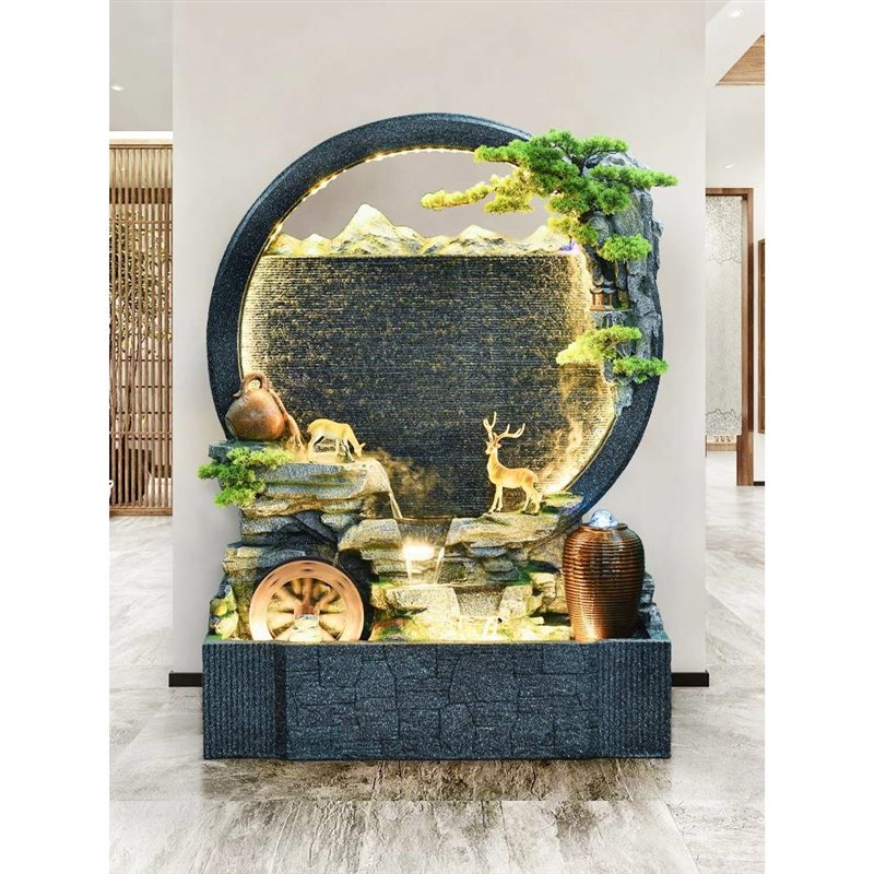 开业假山a喷泉室内客厅落地摆件风水轮水幕墙流水屏风送礼景观