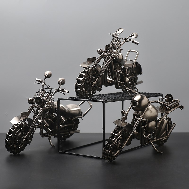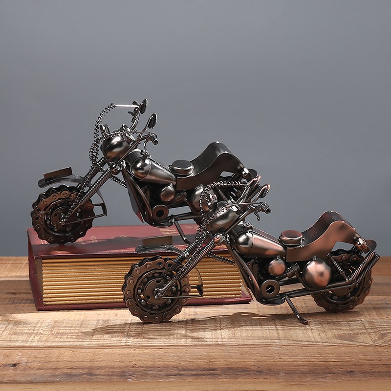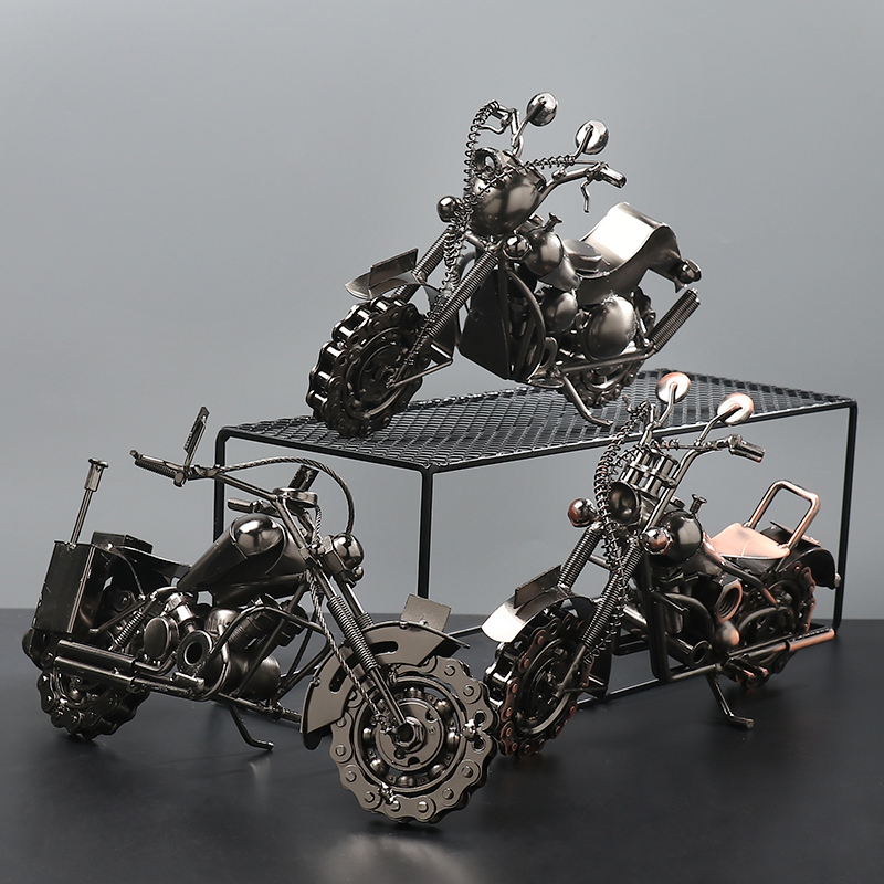 金属哈雷摩托车工业风模型摆件铁艺机甲机械男孩办公室桌面装饰品