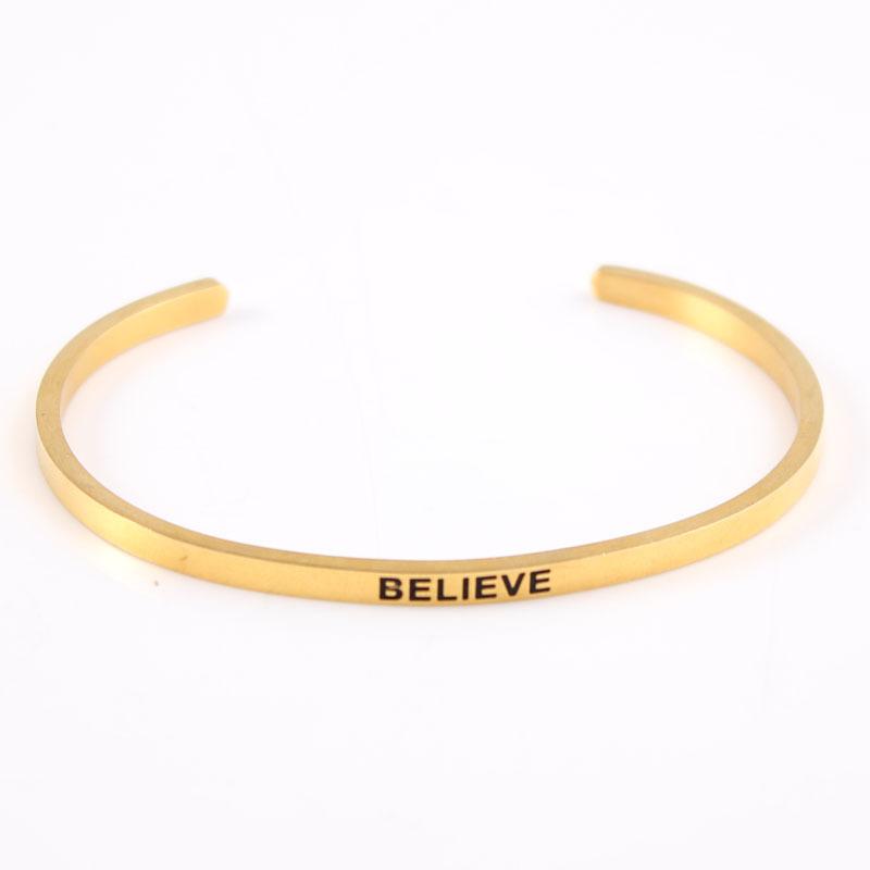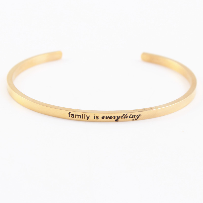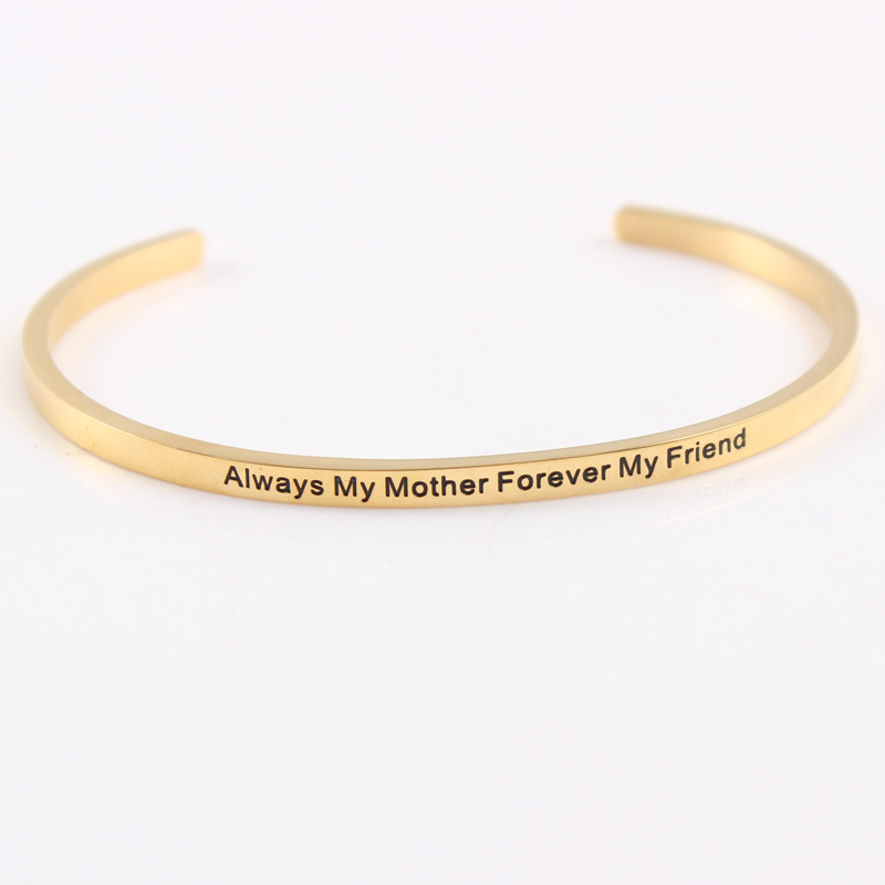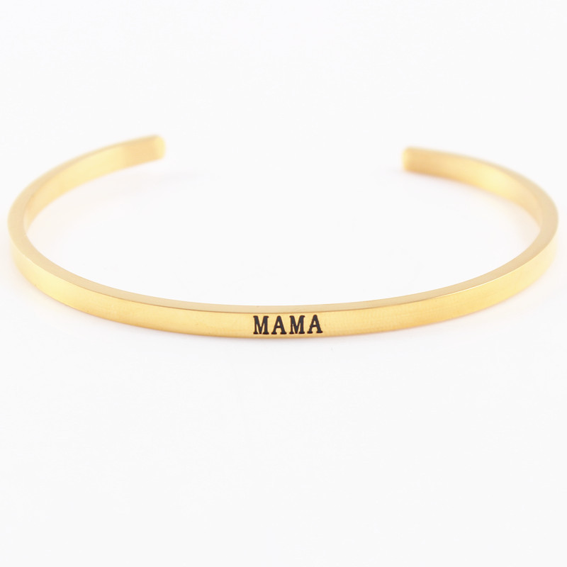 欧美轻奢风开口C型刻字手镯母亲节七夕礼物手环女励志不锈钢手环