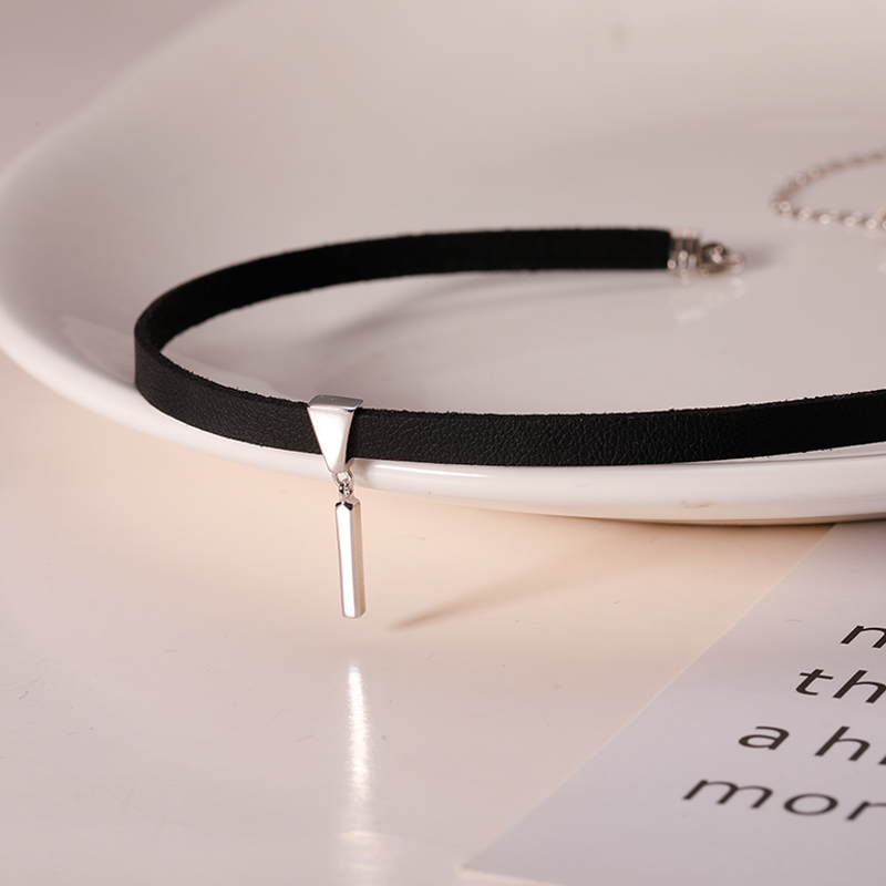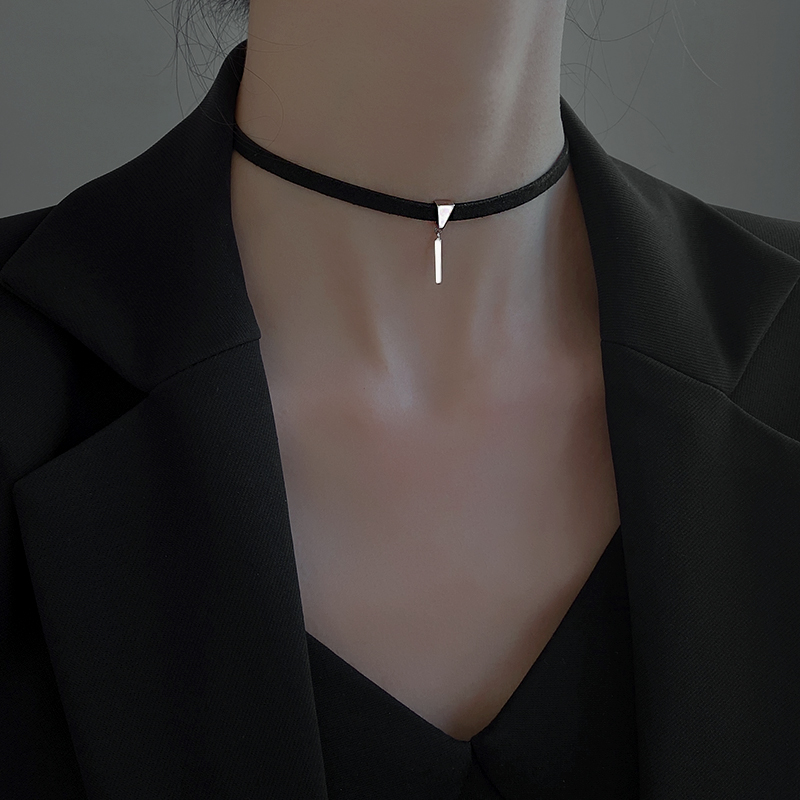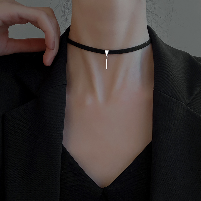 925纯银choker项圈项链女锁骨链设计感颈带黑色短款颈链吊坠配饰