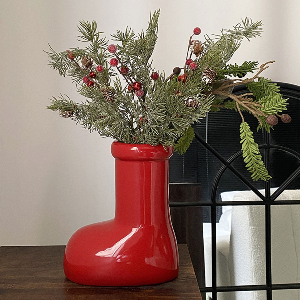 红鞋子陶瓷花瓶轻奢插花摆件感小众喜庆家居装饰花瓶陶瓷摆件