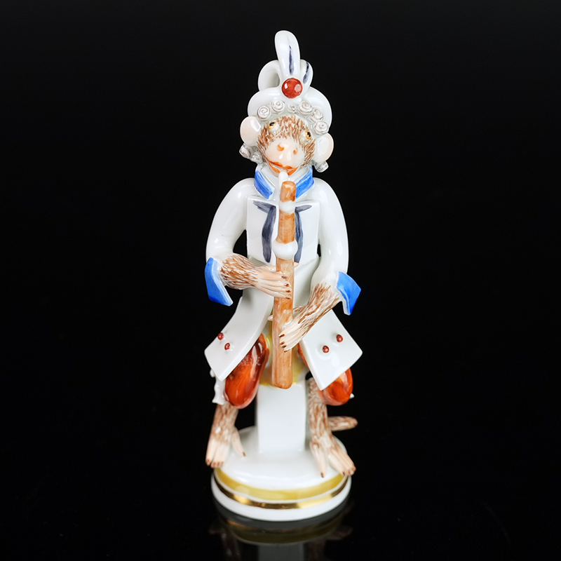 德国MEISSEN 梅森瓷器 收藏系列 猴子乐队 双簧管 彩绘瓷塑 摆件