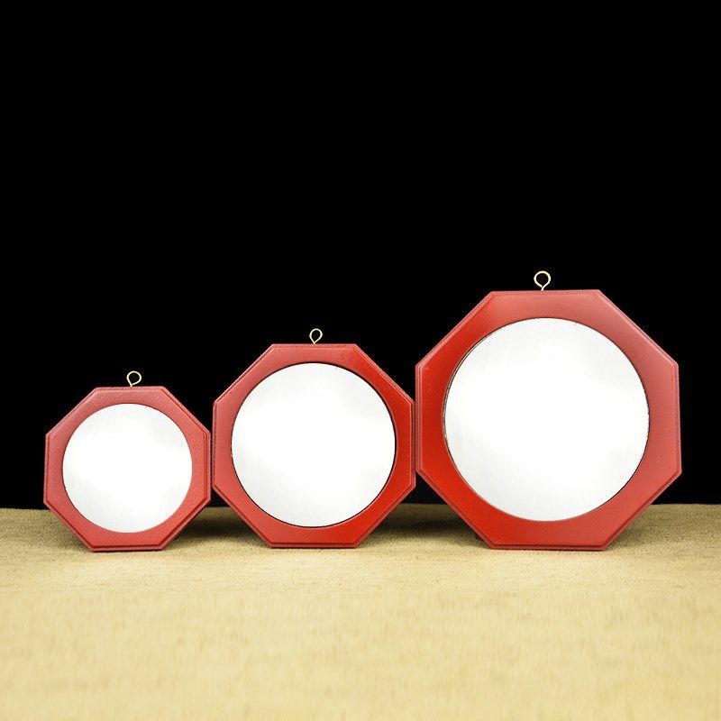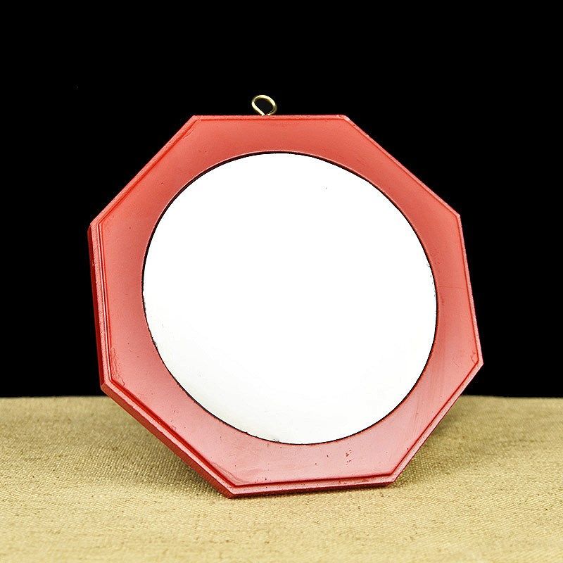 红色实木八卦镜凸镜凹镜小号大门挂件阳台凸面家用入户门窗户摆件