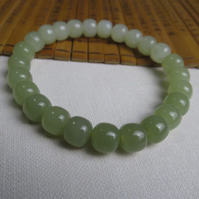 天然正品和田玉老型珠手串青海料和田玉黄口渐变色玉石手链女士款