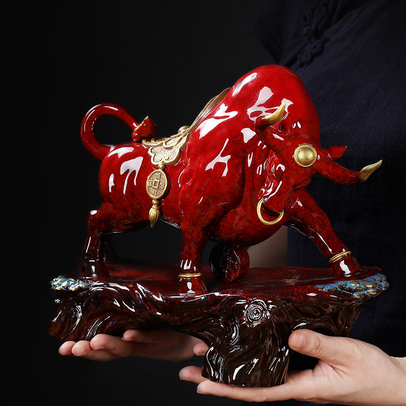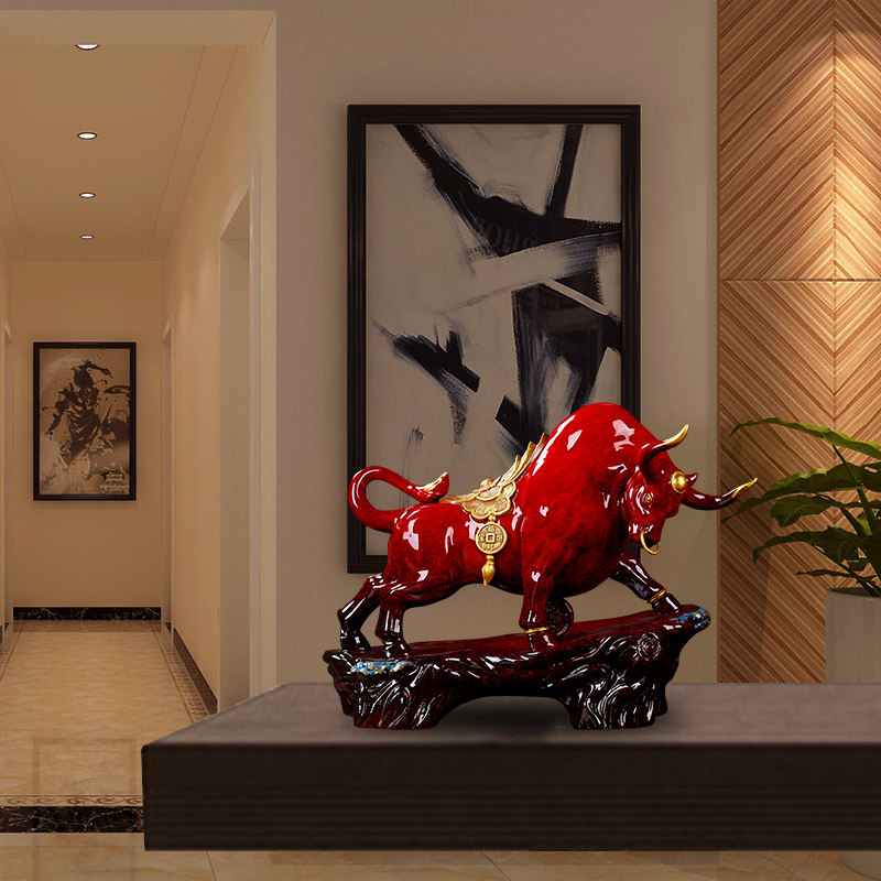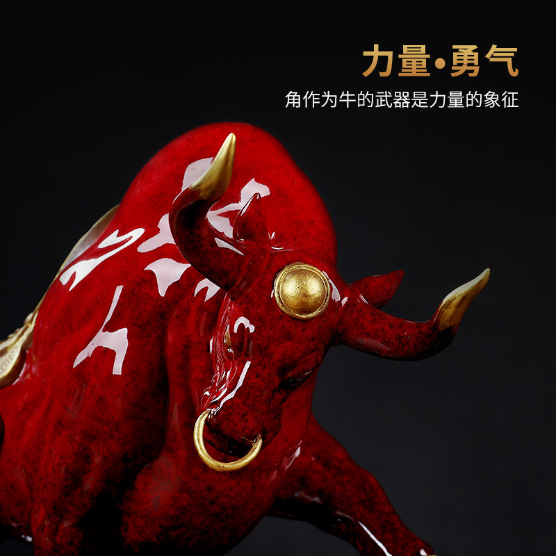 运势如虹陶瓷牛摆件客厅工艺品牛气冲天开业乔迁新居礼品招财礼物
