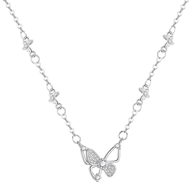 2026闪钻蝴蝶项链甜美气质锆石镂空项饰设计感小红书同款ins包邮