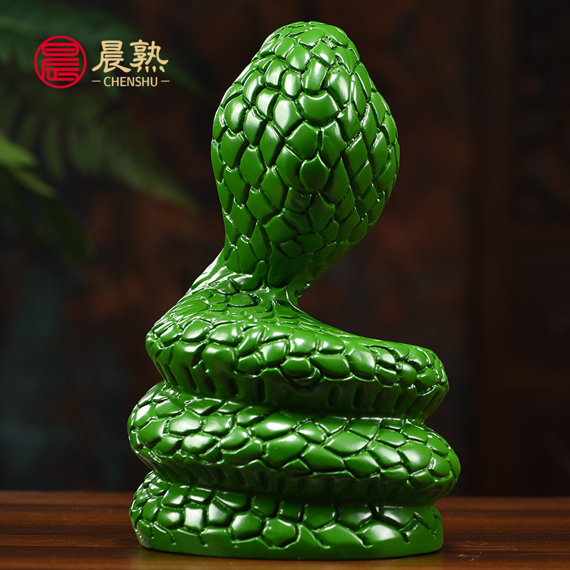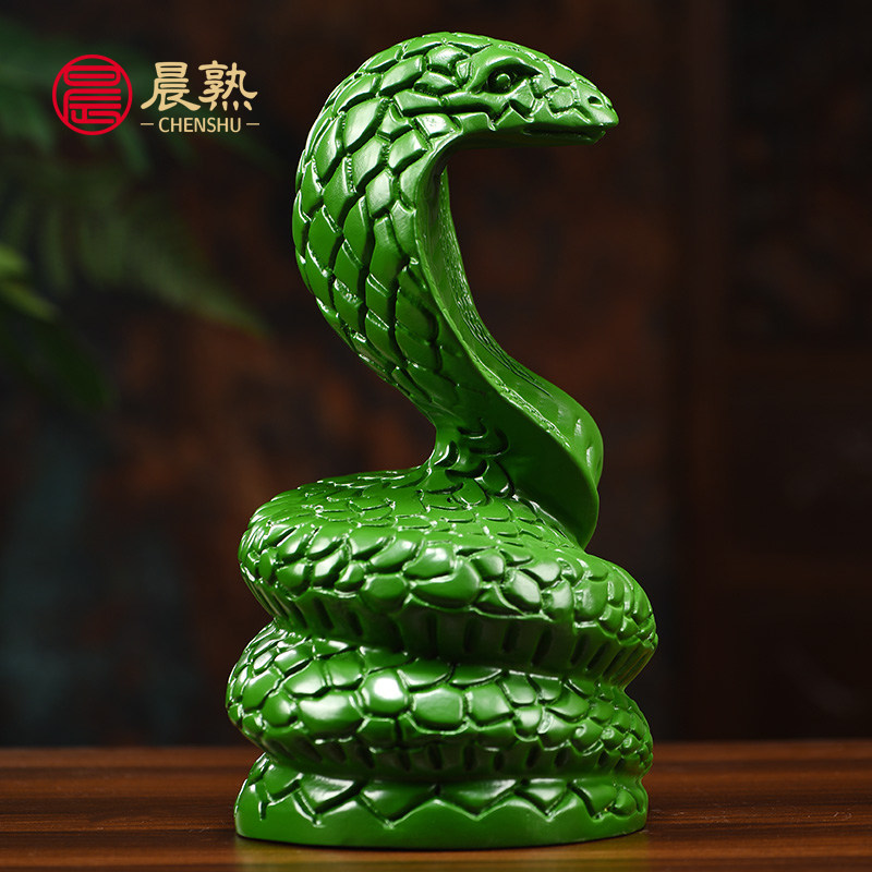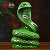 绿色木雕蛇摆件实木雕刻十二生肖蛇家居装饰桌面摆件办公室工艺品