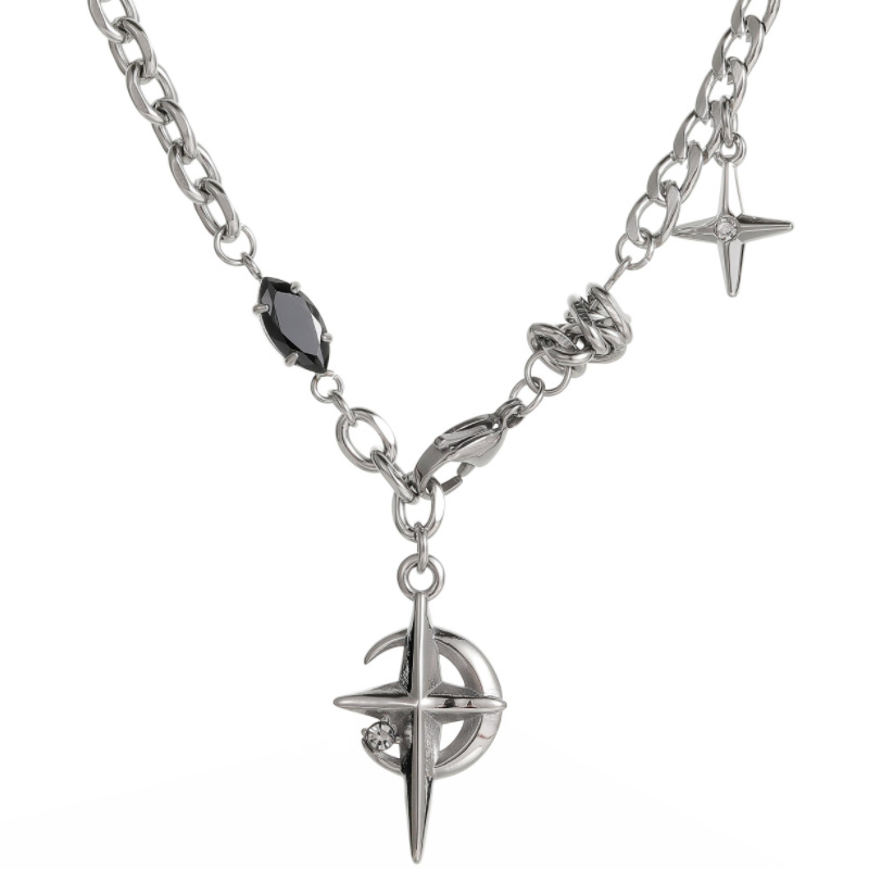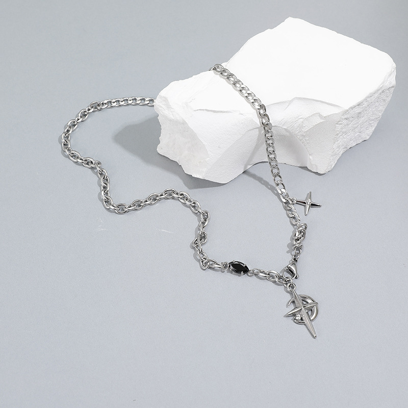 钛钢星芒项链毛衣链男潮嘻哈男女吊坠极简风送男士七夕节礼物设计