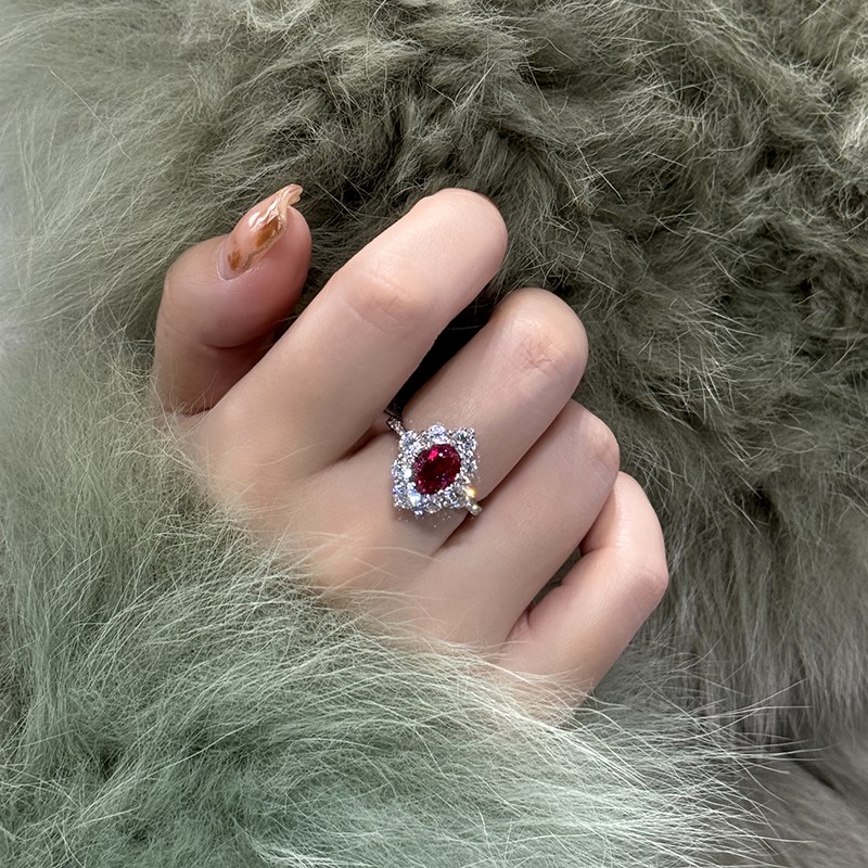 超闪显白围镶钻2克拉红宝石戒指女轻奢高级感鸽血红宝石彩宝钻戒