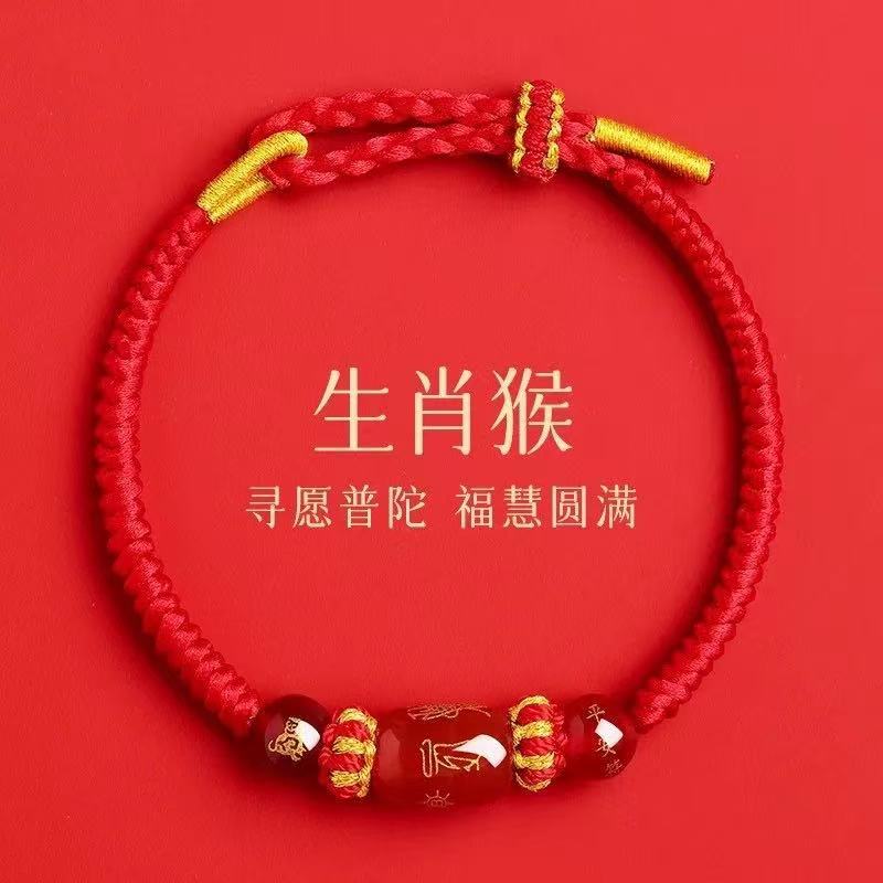 【普陀山官方】2026马年本命年手链红绳编织女红色手绳太岁护身符