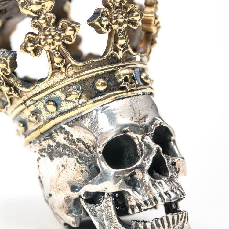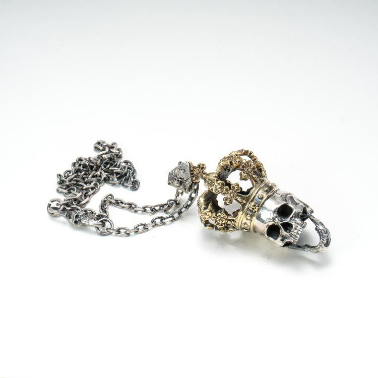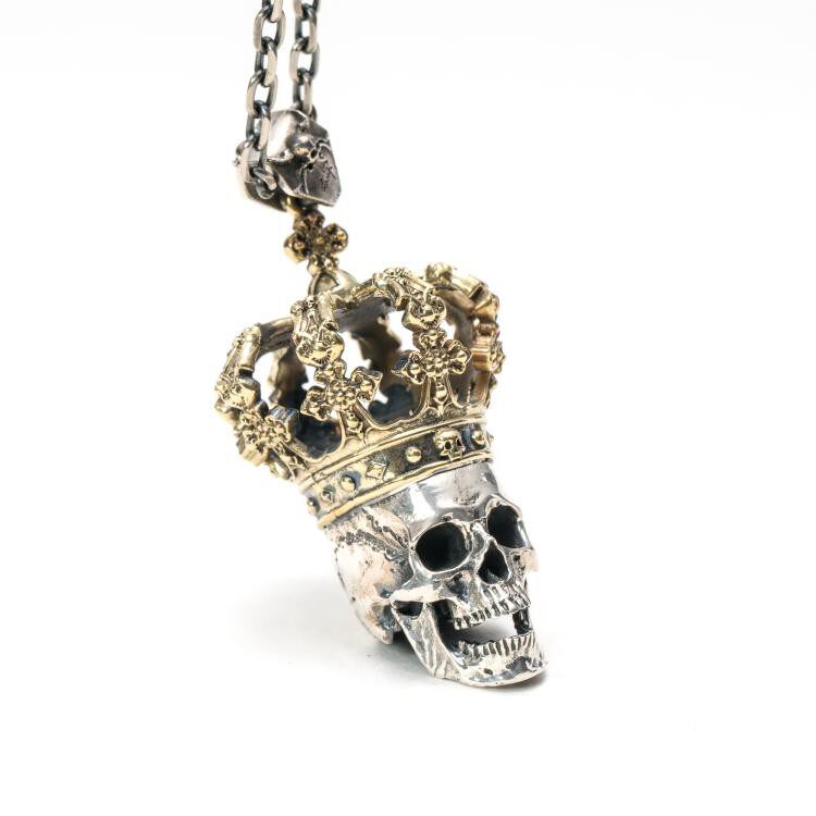 主师原创纯银手工精修暗黑皇冠骷髅国王s925项链分体王族吊坠项链