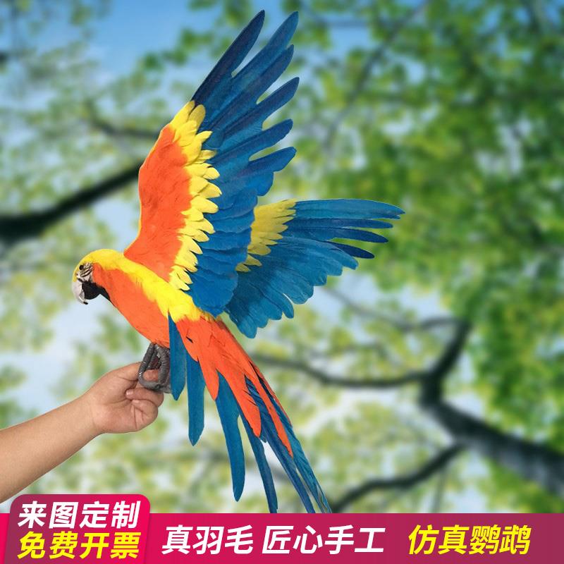 仿真小鸟金刚鹦鹉摆件真羽毛彩色动物标本摄影道具教学工艺品模型