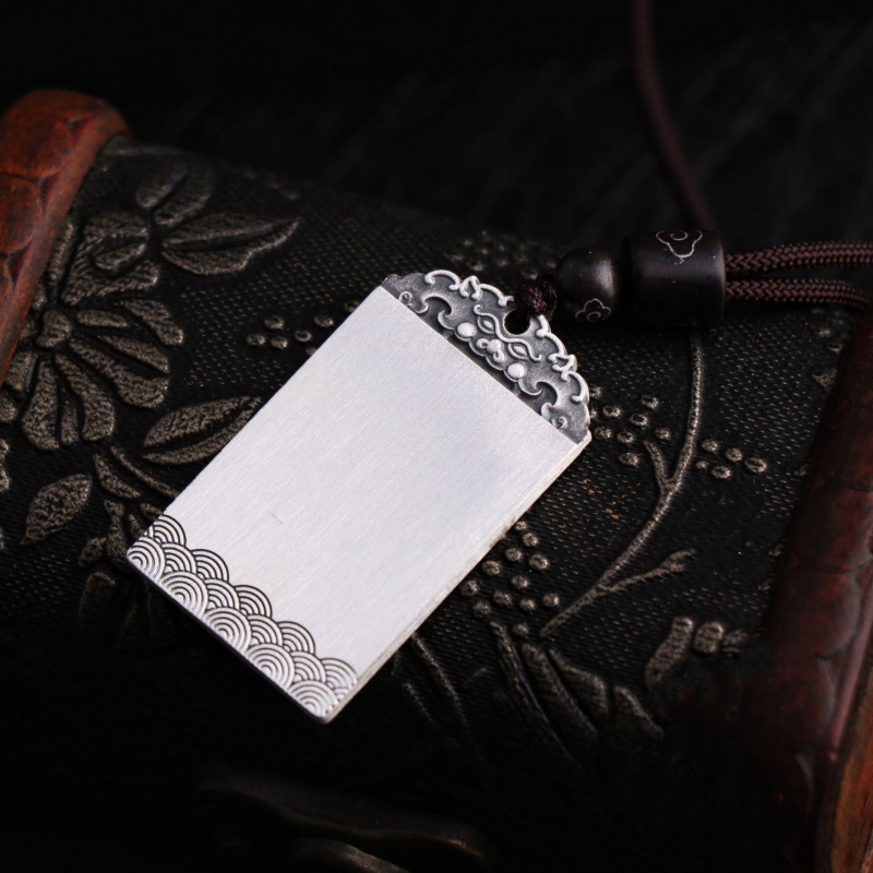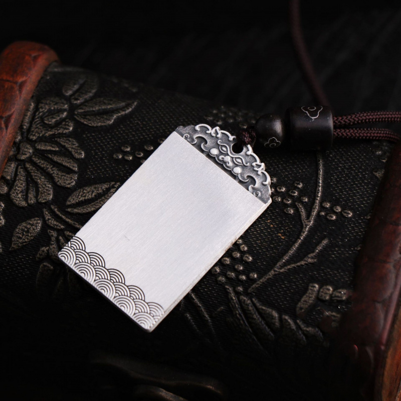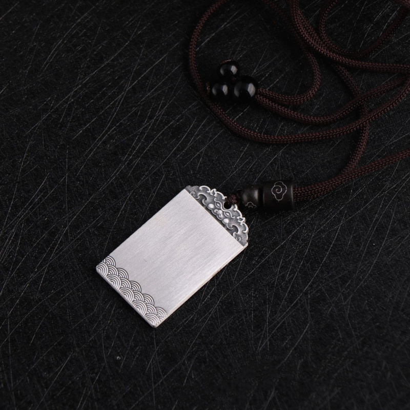 【新年转运】足银S999招财进宝祥云方牌貔貅吊坠福字光面军牌平安
